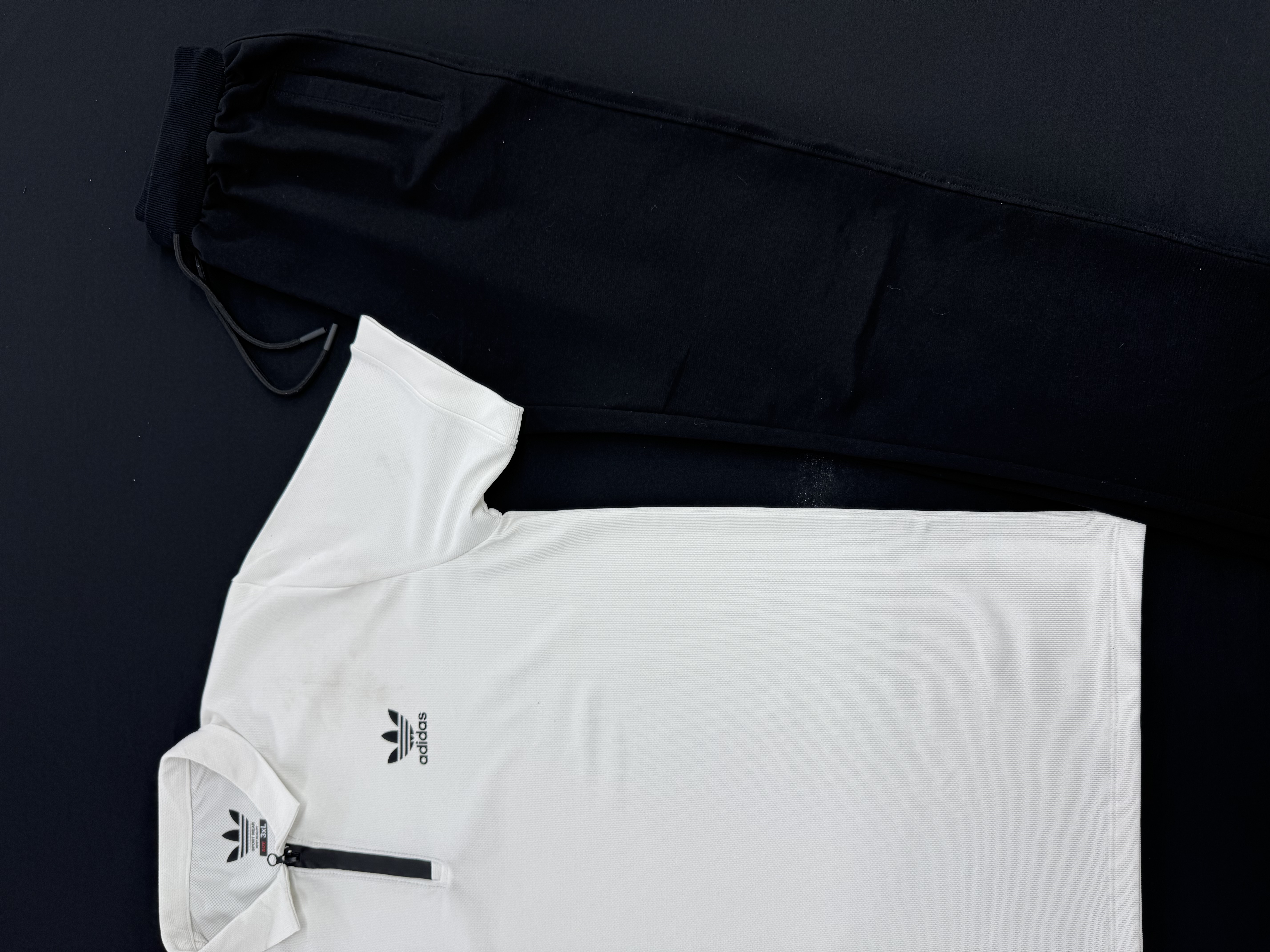این ست مردانه شامل تیشرت نیمزیپ و شلوار مشکی، انتخابی شیک و راحت برای استایل روزمره و اسپرت است. تیشرت با طراحی ساده و یقه نیمزیپ، ظاهری مدرن و جذاب ایجاد میکند و امکان تنظیم باز بودن یقه را برای راحتی بیشتر فراهم میسازد.